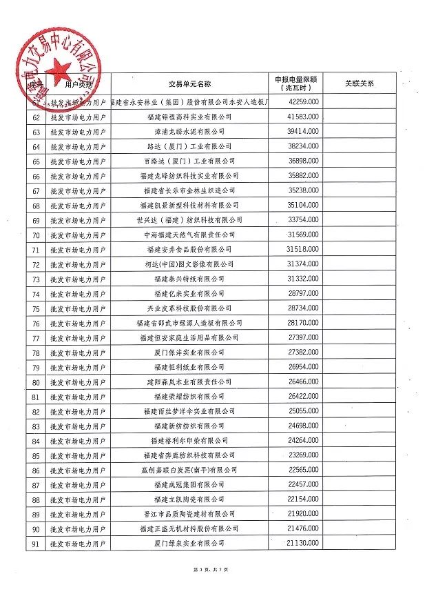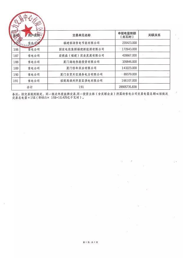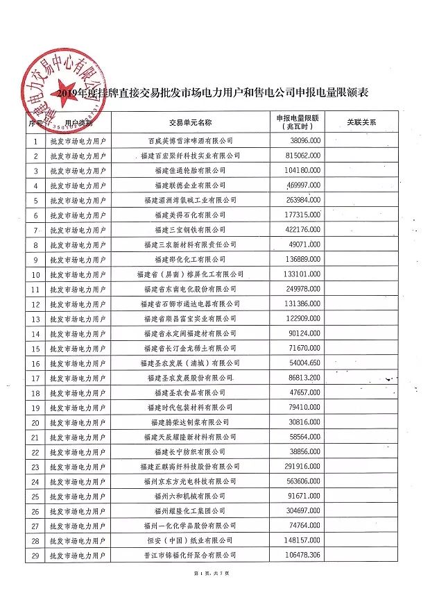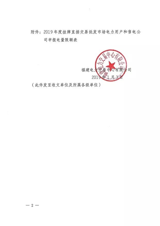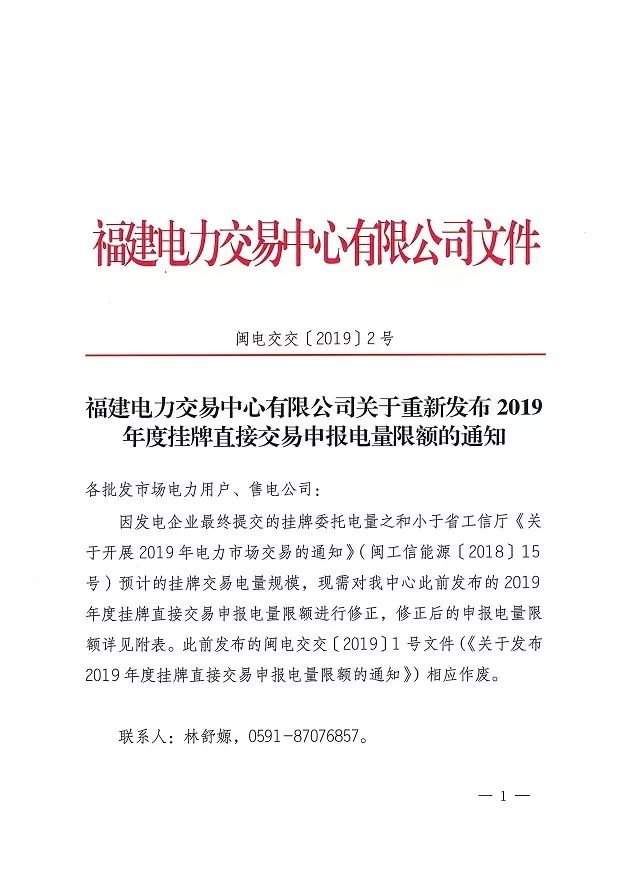 福建電力交易中心發布了《關于重新發布2019年度掛牌直接交易申報電量限額的通知》