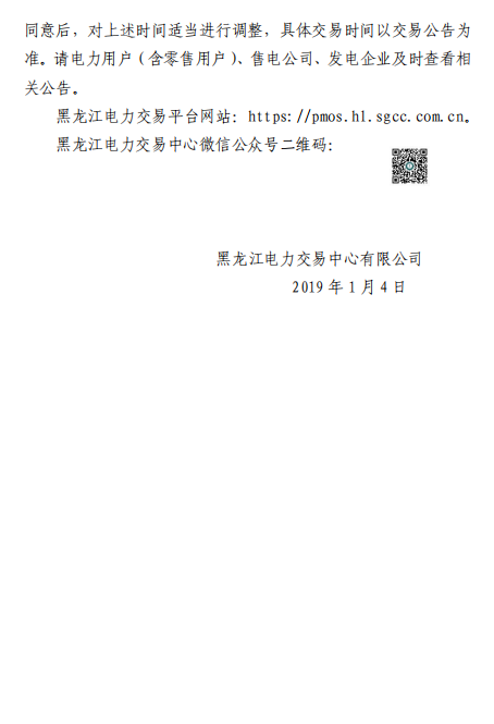 黑龍江電力交易中心發布了《關于黑龍江省2019年電力交易組織時間預安排的通知》