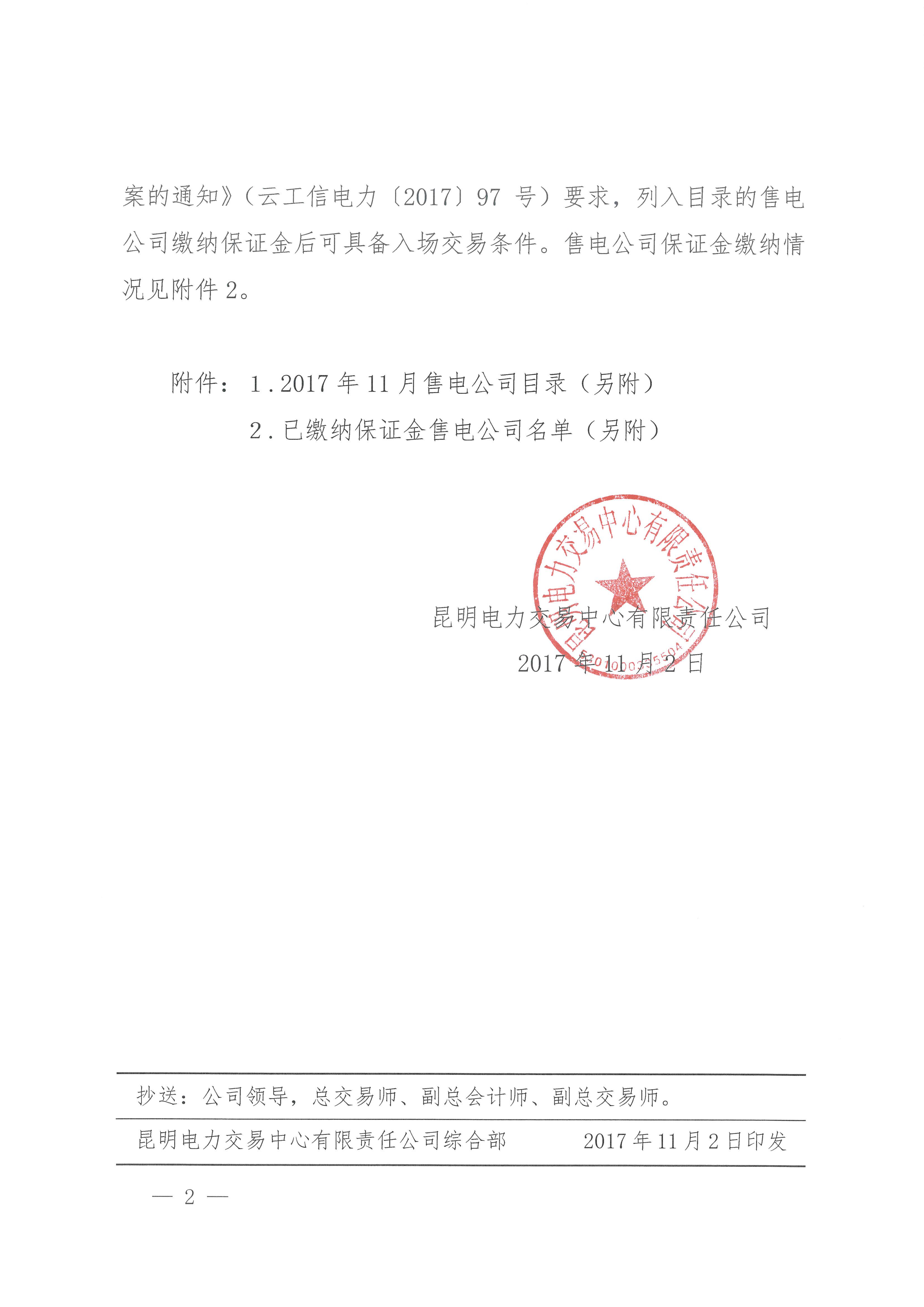 昆明電力交易中心 關于公布2017年11月售電企業目錄的通知