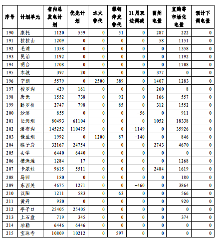 11月21日,四川電力交易中心發(fā)布了《11月偏差調(diào)整公告》,公告稱11月,直調(diào)水電省內(nèi)總發(fā)電計劃電量(不含外送計劃,以下簡稱計劃電量)96 7億千瓦時,實(shí)際發(fā)電需求約81 7億千瓦時,預(yù)計需執(zhí)行下調(diào)約15億千瓦時。截