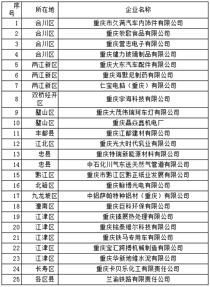 重慶市2018年電力直接交易試點擬準入新增企業名單的公示:新增企業25家