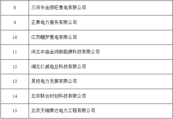 冀北電力交易中心有限公司于2017年11月15日至2017年12月15日共對26家售電公司進行了公示,具體為:在冀北電力交易中心申請注冊的河北巖峰售電有限公司等4家售電公司;北京電力交易中心受理并在冀北電網有售電業務的國電訊通(北京)電力供應有限公司等15家售電公司;北京電力交易中心推送業務范圍變更至冀北的國投甘肅售電有限公司等7家售電公司。