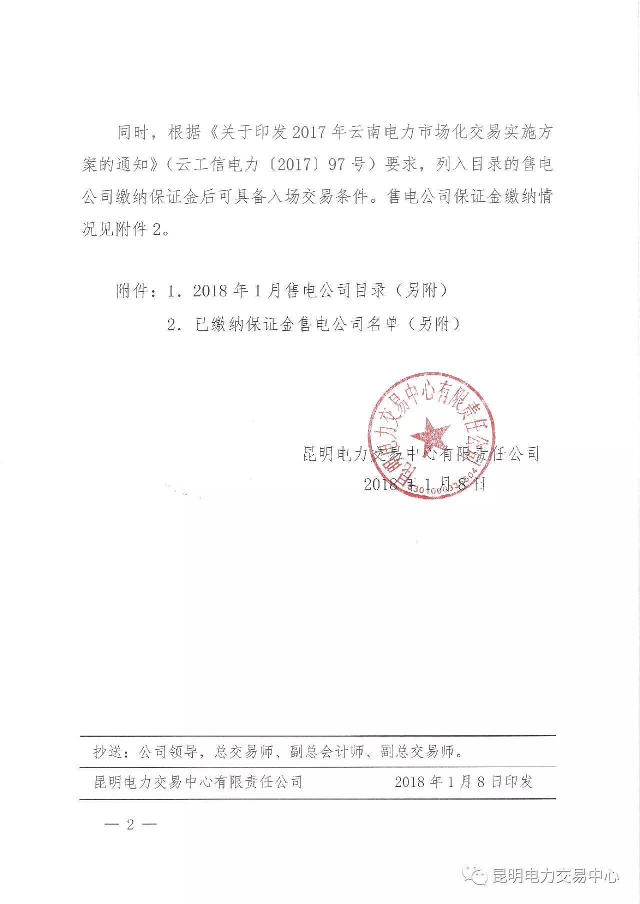 昆明電力交易中心日前公布了《2018年1月售電企業(yè)目錄》,公示期間,因市場(chǎng)主體對(duì)云南中泰豐源新能源有限公司有異議,公示不通過(guò),暫不納入