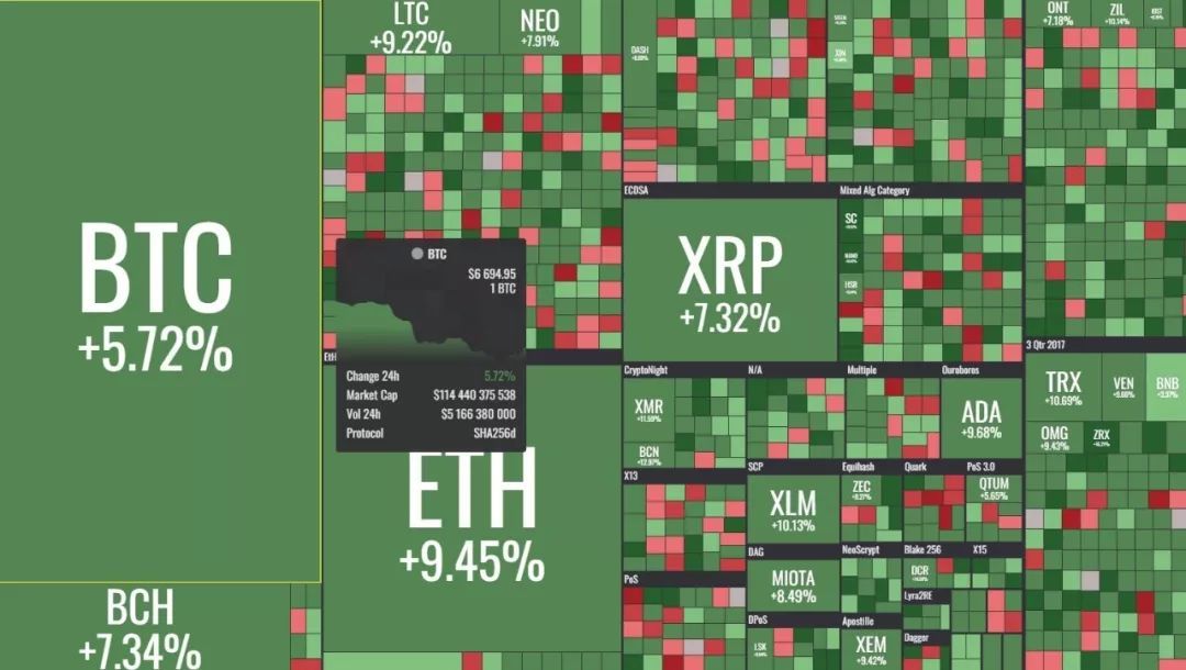以前叫 CryptoMaps,是一個單純展示價格波動的可視化網站。方塊的大小與市值或者交易量掛鉤,時間段顯示可以根據用戶的選擇定制。中國投資者對該網站應該不太陌生,因為經常有媒體用該網站生成的彩色圖表展示加密貨幣的市值變化與價格走勢。
