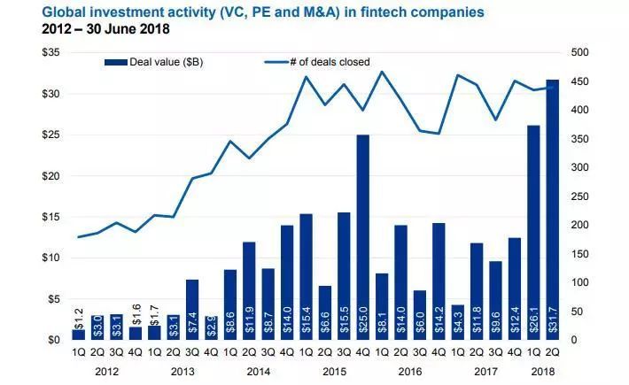 人們在金融科技領域的投資已經超過了2017年的總體水平,而且即將超越2015年的峰值——2018年上半年全球已經在金融科技領域投資了579億美元。投資者認為金融科技行業的潛力正在不斷增長,這對區塊鏈技術來說無疑是個好消息。