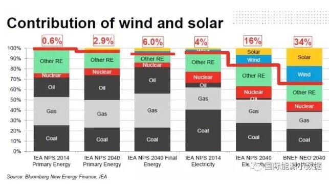 預測】2040年風電光伏在全球發電占多大比例?IEA說16%;BNEF說34%