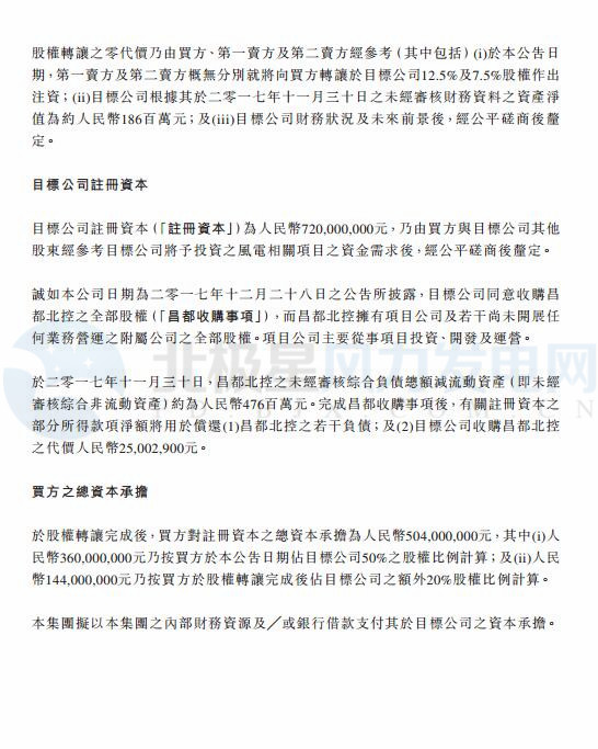目標公司注冊資本為7.2億元(720,000,000元),為一間在中國成立的有限公司,目前為北控清潔能源間接擁有50%權益的附屬公司,主要從事投資、開發及運營清潔能源發電相關項目(包括風力發電)。于股權轉讓完成后,北控清潔能源將持有目標公司70%股權,其將繼續為北控清潔能源非全資附屬公司。