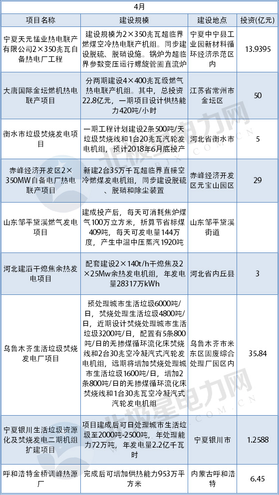 五大發電等2017年開工的火電項目情況:共涉及64項
