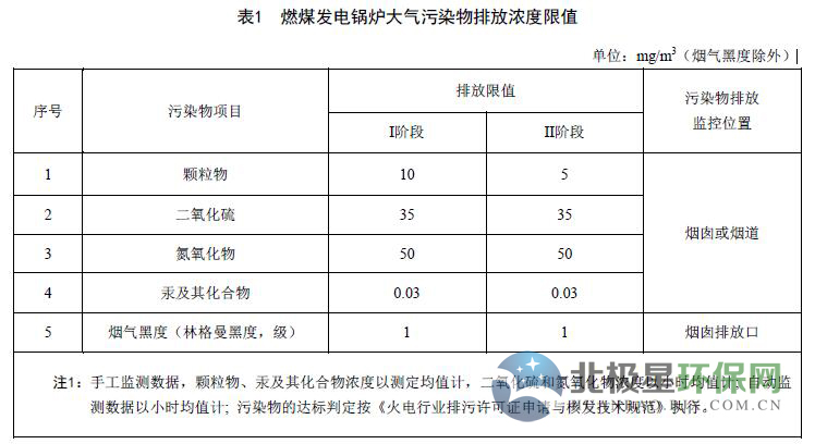 4.1.1自本標準實施之日起,新建燃煤發電鍋爐執行表1中II階段規定的排放限值。