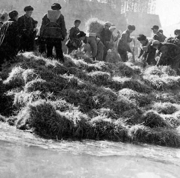 共和國的第一代水電人只用了20天就完成489米的草土圍堰,保證了右岸溢流壩基坑施工。