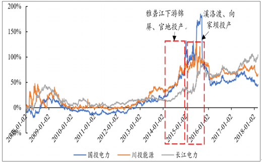 火電成本中燃料成本占比較高(如華能國際燃料成本占比高達60%-70%),由于煤價具有較強的周期性,因而煤價波動會造成火電成本出現較為大幅的變化。然而水電卻與之不同,在水電的成本中,折舊成本占比較高(如雅礱江水電折舊占比64%)。水電折舊是按年限折舊,每年的折舊基本固定,因此水電總成本受宏觀經濟、原材料價格波動等影響均較小,從而使得水電具有成本剛性的特征。