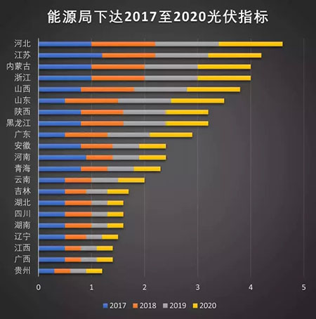 2017年7月17日,國家能源局發布了關于可再生能源發展十三五規劃實施的指導意見,規劃提出:2017-2020年光伏累計新增建設規模86 5GW(不含分布式),其中普通光伏電站54 5GW,領跑者項目32GW。國家能源局同時將21