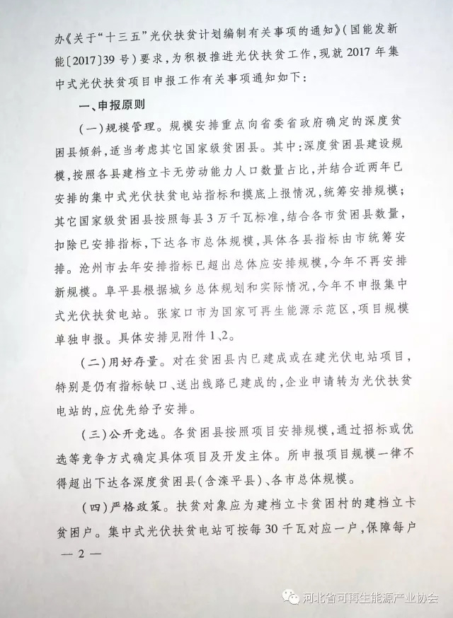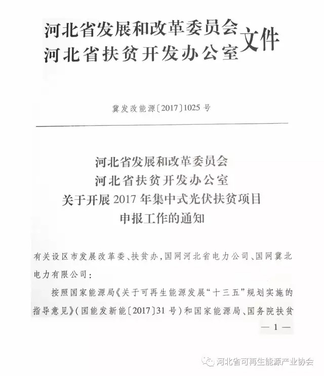 河北開展2017年集中式光伏扶貧項目申報工作 總規模1GW