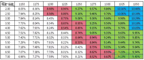 從表一中,我們可以發(fā)現(xiàn),以三類地區(qū)典型有效日照小時(shí)數(shù)1100小時(shí)為例,租金不超過5元/平方米/年,可以滿足投資商8.5%的最低收益的要求。