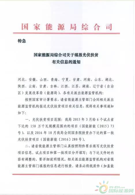 昨天(11月9日)國家能源局綜合司印發了《關于填報光伏扶貧有關信息的通知》,要求開展光伏扶貧的試點省份和擁有第一批光伏扶貧項目的省份按要求填寫光伏扶貧項目信息,并于11月15日前上報。 以下為文件原文: