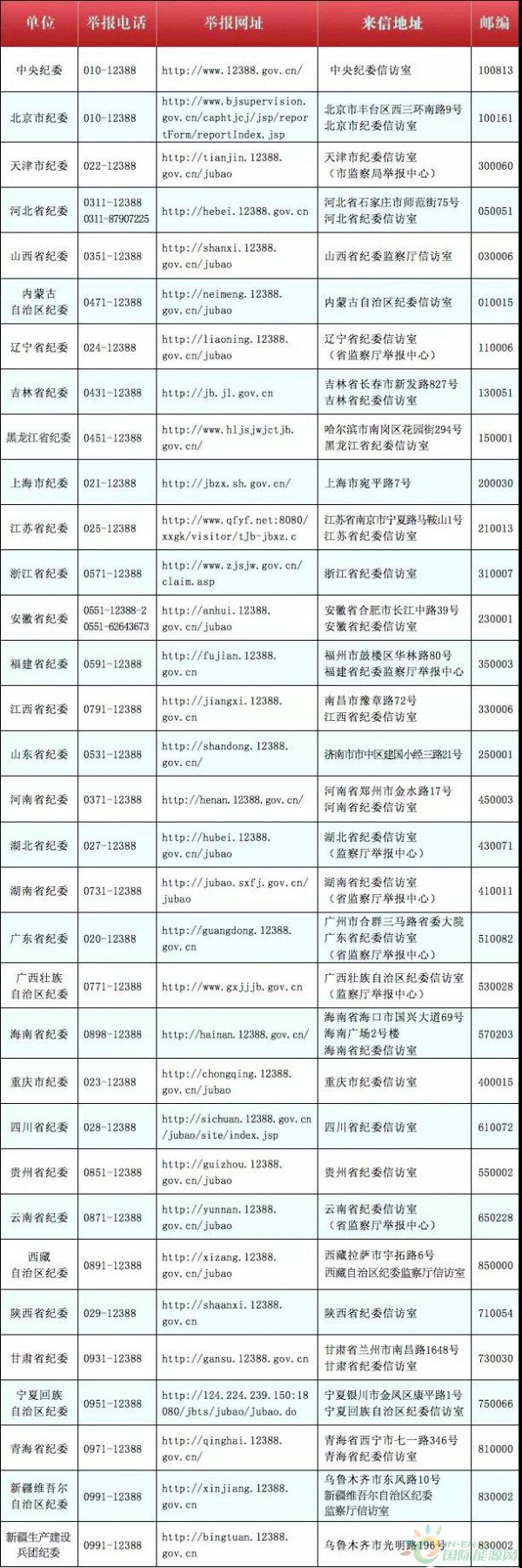 中紀委集中公布各地紀委舉報電話與聯(lián)系地址