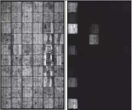 下圖是從某實驗室提供經(jīng)過PID實驗(196h)測試的組件,EL測試呈現(xiàn)的照片。