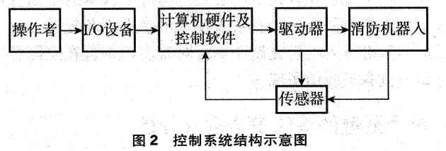 圖2為隧道消防機器人的控制系統結構示意圖。根據圖2可以看出,通常情況下,隧道消防機器人的控制系統設計主要包括硬件和軟件兩個部分。其中,硬件設計主要是進行控制器的選擇應用,根據控制器類型以及性能特點,選擇適用于隧道消防作業的設備,以確保其在消防作業過程中起到較好的控制作用。一般情況下,為確保控制器性能,隧道消防機器人多以工控機以及PLC作為控制器核心器件,同時結合其他功能需求,選擇相應的設備構件。此外,消防機器人的控制軟件設計應根據作業情況,通過作業任務描述以及部件構建、多代理情況描述以及端口對象動態配置、通信等結構功能設置,并通過分布式結構安排,建立能夠實現運行管理與控制的系統形式。