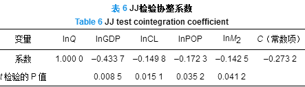 Table 6 JJ test cointegration coefficient
