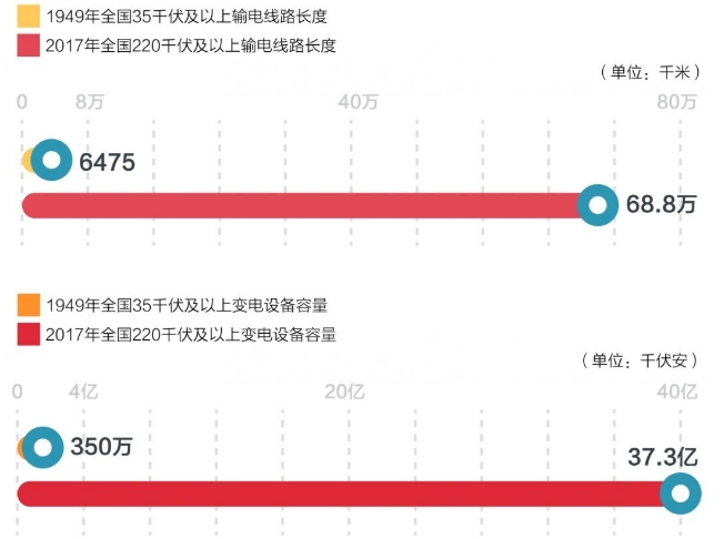 事實(shí)證明,只有全國(guó)一張網(wǎng)、一盤(pán)棋,才能實(shí)現(xiàn)更大范圍內(nèi)的資源優(yōu)化配置,西電東送、北電南供才能實(shí)現(xiàn)。從1978年到2017年,220千伏及以上輸電線(xiàn)路長(zhǎng)度增長(zhǎng)了29倍,變電容量增長(zhǎng)了147倍。
