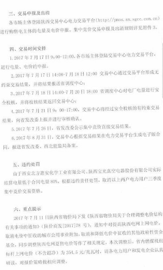 值得注意的是,通知中對西安北方惠安化學工業有限公司、陜西寶光真空電器股份有限公司實際結算電量低于合同電量80%,根據違約責任處罰,這兩家電力用戶三季度的交易資格被取消。