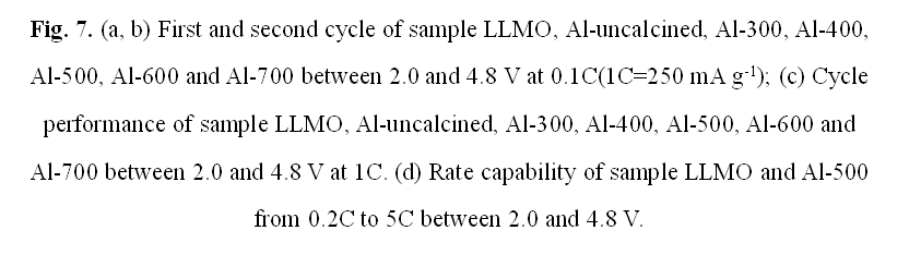 近期,梁逵教授團隊碩士研究生文曉峰研究發現采用九水硝酸鋁溶液對富鋰錳正極材料處理并煅燒后,可以把它的表層層狀結構轉變為尖晶石結構,并在尖晶石結構外包覆一層氧化鋁。尖晶石結構具有3D鋰離子運輸通道,大大提高了鋰離子的傳導速率,從而提高材料的倍率性能;同時氧化鋁包覆層可以隔絕活性材料與電解液的直接接觸,避免了電解液對活性材料的損害,提高循環性能。這種處理方法工藝簡單,對設備要求低,可以同時提高富鋰錳正極材料的倍率性能和循環性能。經過改性處理后,富鋰錳正極材料在250mA/g的電流密度下放電容量可高達240mAh/g,在1250mA/g的大電流下放電容量仍能達到190mAh/g。