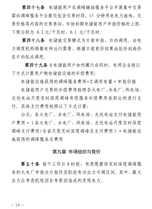 《甘肅省電力輔助服務(wù)市場(chǎng)運(yùn)營(yíng)規(guī)則(試行)》 單機(jī)容量100MW及以上的燃煤、燃?xì)獾然痣姍C(jī)組參與調(diào)峰
