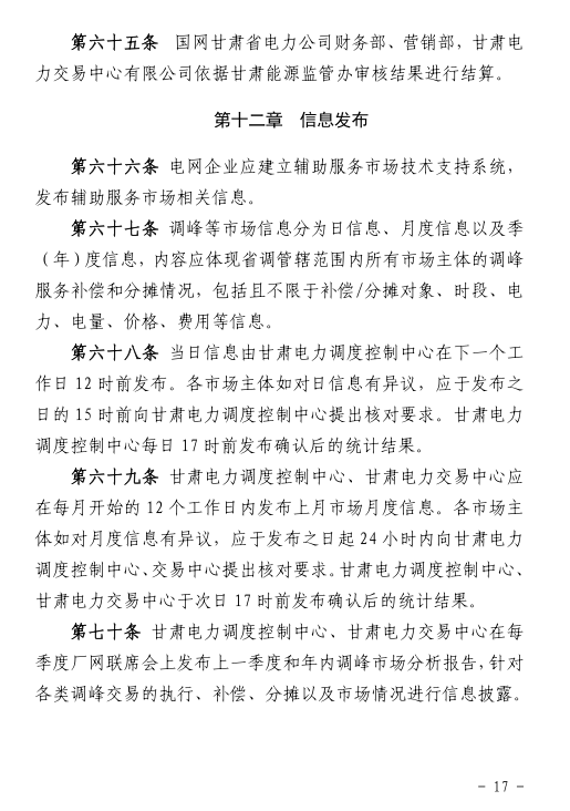 《甘肅省電力輔助服務(wù)市場運營規(guī)則(試行)》 單機容量100MW及以上的燃煤、燃氣等火電機組參與調(diào)峰