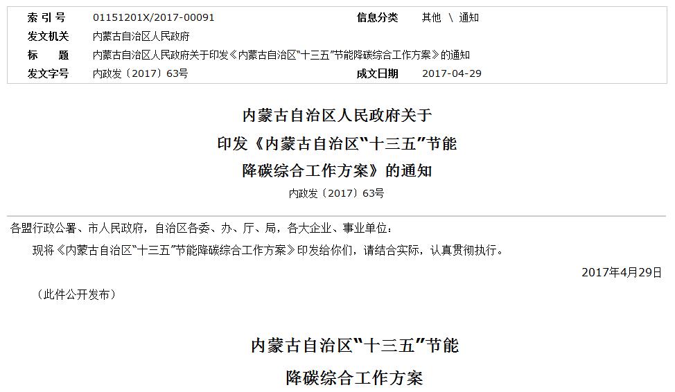 推碳交易!《內蒙古自治區“十三五”節能降碳綜合工作方案》印發