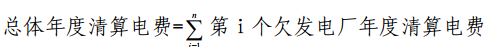 第i個欠發電廠年度清算電費=第i個欠發電廠年度清算平衡電量×第i個欠發電廠年度所有市場化合同電量的加權平均電價