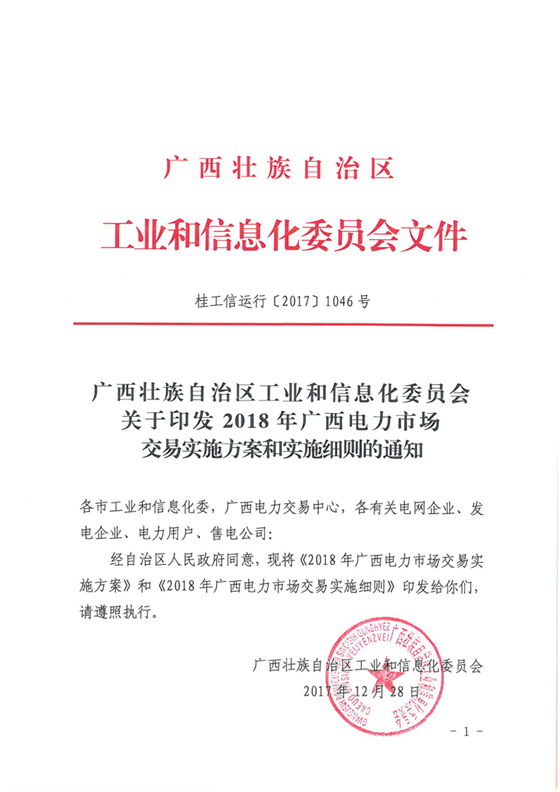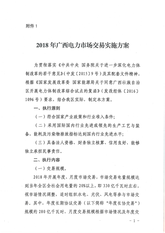 廣西壯族自治區工信委日前發布了《2018年廣西電力市場交易實施方案和實施細則的通知》,通知中稱,2018年開展年度、月度市場交易,市場交易電量規模達到當年全區全社會用電量的20%以上,即330億千瓦時左右,視市
