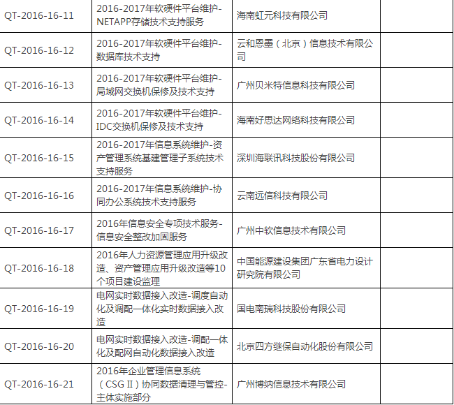 南網海南電網2016年第二批信息化項目招標中標公告
