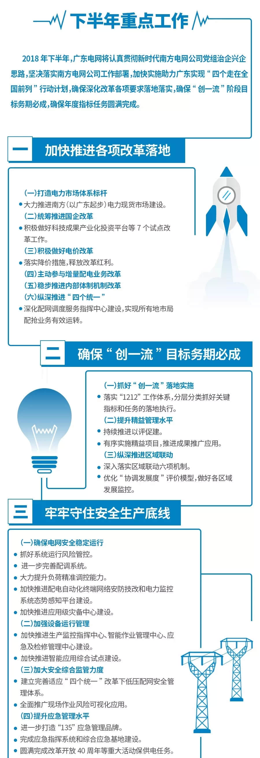 2018年下半年怎么做,廣東電網(wǎng)劃重點(diǎn)啦!一是加快推進(jìn)各項(xiàng)改革落地。打造電力市場(chǎng)體系標(biāo)桿:大力推進(jìn)南方(以廣東起步)電力現(xiàn)貨市場(chǎng)建設(shè)。積