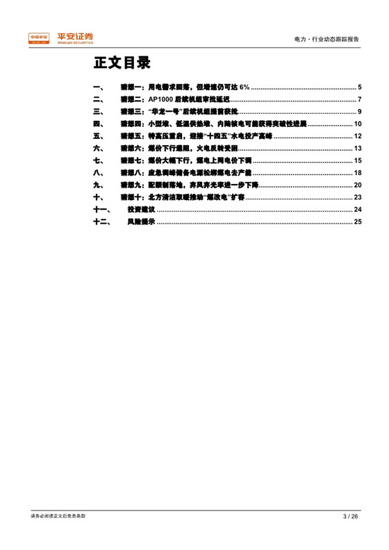 風險提示:1、利用小時下降;2、上網電價降低;3、煤炭價格上升;4、政策推進滯后;5、降水量減少。