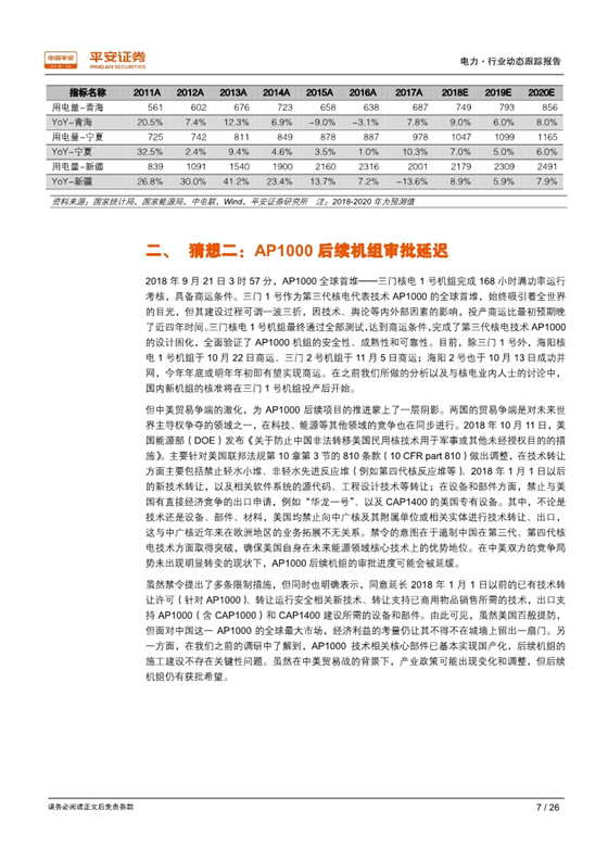 猜想二:AP1000后續(xù)機組審批延遲。美國能源部《關于防止中國非法轉移美國民用核技術用于軍事或其他未經授權目的的措施》,為AP1000后續(xù)項目的推進蒙上了一層陰影。在中美雙方的競爭局勢未出現明顯轉變的現狀下,AP1000后續(xù)機組的審批進度可能會被延緩。