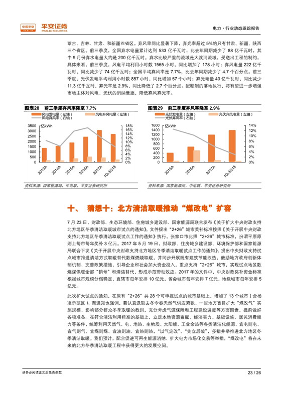 猜想十:北方清潔取暖推動“煤改電”擴容。北方地區(qū)冬季清潔取暖試點范圍擴大,配合促進可再生能源消納、擴大電力市場化交易等舉措,“煤改電”將獲得更大的發(fā)展空間。