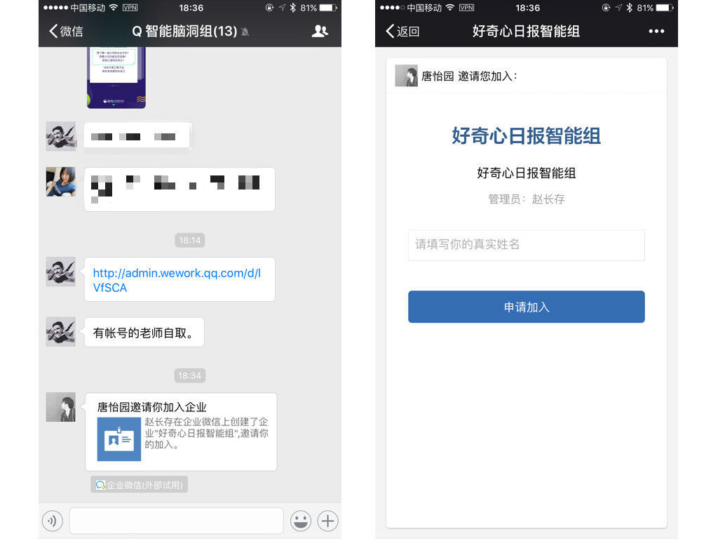 最近浮出水面的企業(yè)微信,就是一個試圖將你工作和生活分開的微信工具。《好奇心日報》拿到內(nèi)測,我們使用這個工具工作了一天。