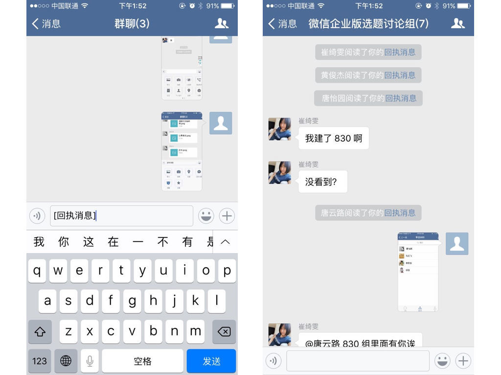 回執(zhí)消息功能:你會看到別人是否閱讀了這條消息