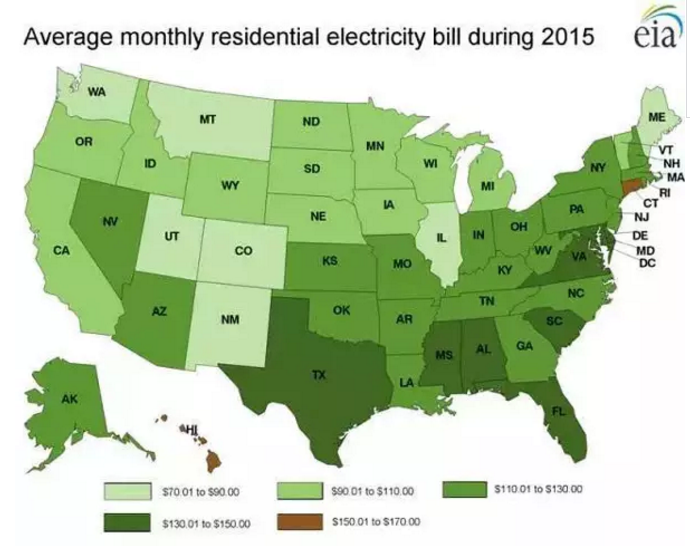 美國電價市場化,每度電也不是一個價,不同電力公司收費方式不同,同一個電力公司也有不同的計劃。