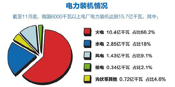 10月份以來,《電力發展“十三五”規劃》出臺,成為首個公布的“十三五”能源專項規劃。預計到2020年,發電裝機容量達到20億千瓦。屆時非化石能源發電裝機達到7.7億千瓦左右,發電量占比提至31%。煤電裝機力爭控制在11億千瓦以內。
