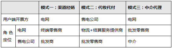 三種模式中,售電公司和電網各自的電力市場角色定位和利益實現是不同的,下表對三種模式下售電公司和電網各自的定位進行了總結對比: