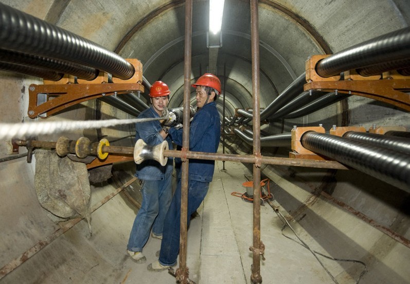 9月12日,電力工人在無錫經貿路15米深的地下電纜隧道中敷設220千伏電纜。近年來,隨著城市進成的加快,無錫新建、改建、擴建的道路越來越多,為適應城市的變化,國網無錫供電公司實施“電纜入地”工程,將老式柱上變壓器改為新穎別致的箱式變壓器、縱橫交錯的架空線改為地下電纜。據了解,目前10千伏地下電纜有4410多千米、35千伏至220千伏地下高低壓電纜有620多千米,在美化無錫的同時確保了居民安全用電。