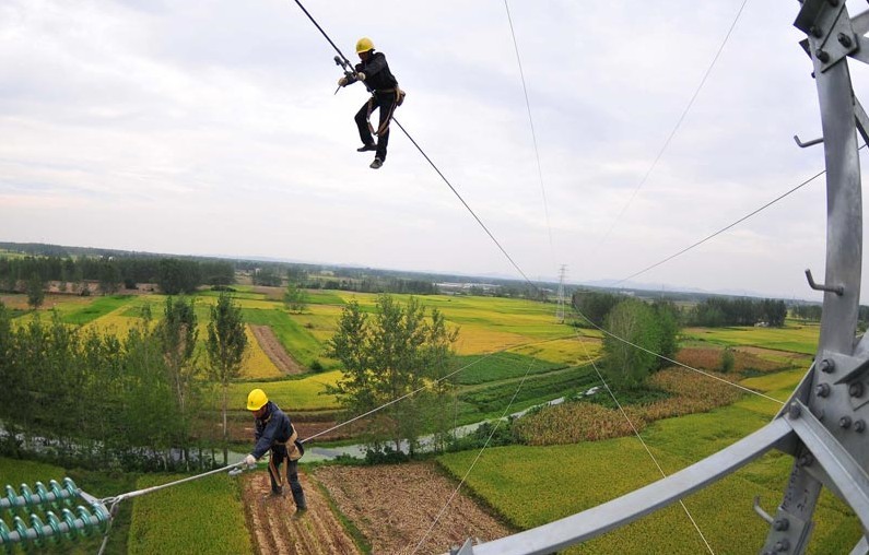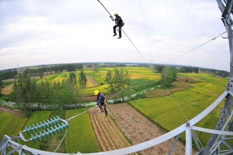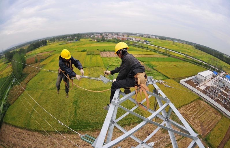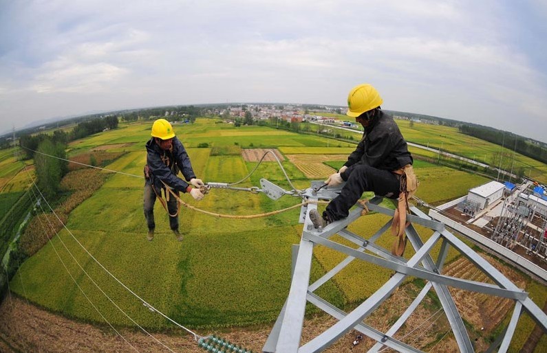 2013年9月28日,在安徽省滁州市定遠(yuǎn)縣永康鎮(zhèn)光明村,電力工人在50多米的高空對輸電線路進(jìn)行檢修,確保全市工農(nóng)業(yè)生產(chǎn)用電。當(dāng)日,安徽省滁州市供電公司利用“國慶”節(jié)前部分企業(yè)放假、電力負(fù)荷較輕的有利時(shí)機(jī),組織800多名技術(shù)人員對全市94條重要電力線路進(jìn)行檢修,確保滁州電網(wǎng)安全穩(wěn)定運(yùn)行,為“國慶”期間全市工農(nóng)業(yè)生產(chǎn)和城鄉(xiāng)居民秋冬季提供可靠供電。