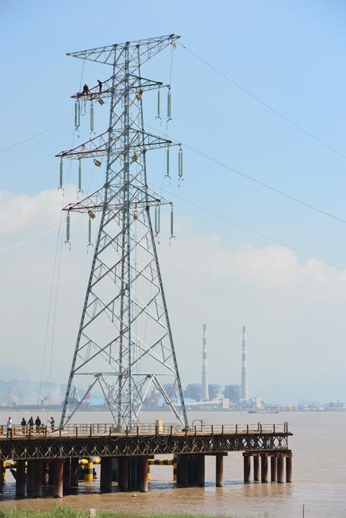 7月22日,正值大暑節(jié)氣,溫州供電公司員工冒著高溫為110千伏蘇川-起步線工程江中段架線施工。據(jù)了解,110千伏蘇川-起步線段工程于2012年2月全面啟動建設(shè),線路工程全長23 5公里。其中江中段為控制性節(jié)點,是目