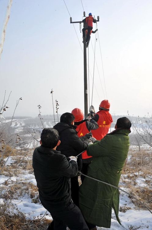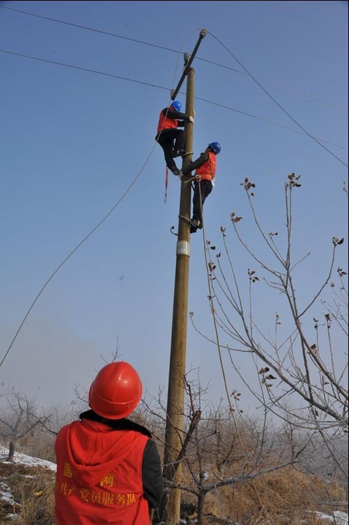 農(nóng)歷正月初四,國(guó)家電網(wǎng)山東棲霞供電公司員工在10千伏陽(yáng)谷線(xiàn)——超市專(zhuān)供雞場(chǎng)支線(xiàn)緊急搶修C相斷線(xiàn)。