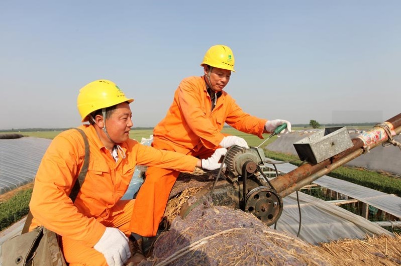 圖一:5月13日,該公司羊莊供電所農電工在上屯村甜椒蔬菜大棚基地幫助菜農檢修卷簾機。
