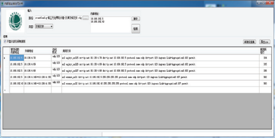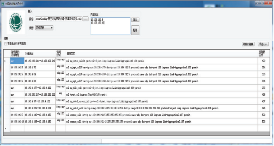 黃山供電公司自主研發(fā)的防火墻ACL策略解析分析工具很好地解決了防火墻規(guī)則過于繁瑣龐大、不利于分析管理的問題,網(wǎng)絡(luò)安全運(yùn)維人員可利用工具快速發(fā)現(xiàn)內(nèi)網(wǎng)區(qū)域地址資源開放情況,并針對不合規(guī)的開放進(jìn)行整改、完善,實(shí)現(xiàn)不合規(guī)策略的早發(fā)現(xiàn)、早處理,降低因策略的不合理設(shè)置帶來的安全風(fēng)險(xiǎn)。
