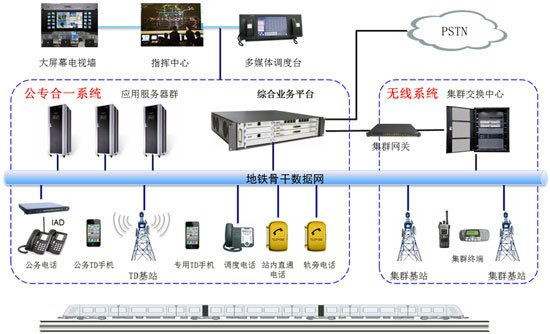 在軌道交通通信系統(tǒng)中,公務電話系統(tǒng)主要用于地鐵內(nèi)部各部門、地鐵用戶與公網(wǎng)用戶之間的電話聯(lián)系,為線路的運營、管理、維修等部門的工作人員提供服務;專用電話系統(tǒng)是調度員和車站、車輛段值班員指揮列車運行和下達調度命令的重要通信工具,是為列車運營、電力供應、日常維修、防災救護、票務管理提供指揮手段的專用通信系統(tǒng)。在提供的業(yè)務上,兩者之間沒有任何聯(lián)系,因此在軌道交通通信系統(tǒng)中兩個系統(tǒng)一般是分開設置的獨立運行。但是,由于公務電話系統(tǒng)和專用電話系統(tǒng)均是以電話交換機為基礎,因此完全可以通過優(yōu)化系統(tǒng)方案,在保證公務電話系統(tǒng)和專用電話系統(tǒng)可靠性和獨立性的基礎上,實現(xiàn)二者的融合。