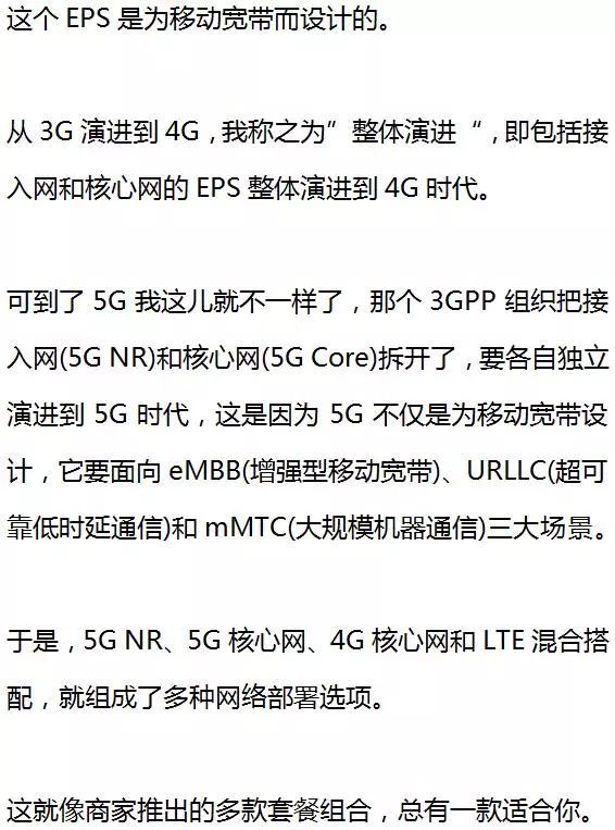也就是說,選擇選項5的運營商只考慮核心網演進到5G,但并不將無線接入網演進到5G NR。大概是為了減少投資,而又看好具備網絡切片能力的5G核心網吧!估計有些4G專網會喜歡這一部署方式吧!
