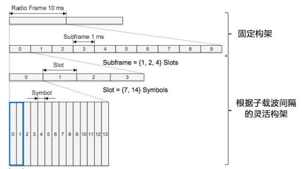 不同的是,5G NR定義了靈活的子構架,時隙和字符長度可根據子載波間隔靈活定義。